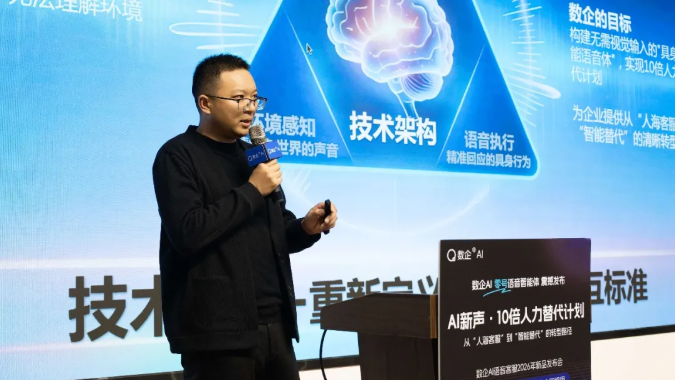 昨日,数企“AI新声·10倍人力替代计划”新品发布会在合肥中国视界产业港圆满落幕。本次发布会不仅标志着其革命性产品——“数企AI零号语音智能体”的正式问世,更清晰描绘了企业客户服务从依赖“人海战术”转向“智能替代”的确定性路径。整场发布会通过战略解读、技术拆解与场景实证,向业界宣告:一个由“数字员工”驱动效率革命的时代已经到来。