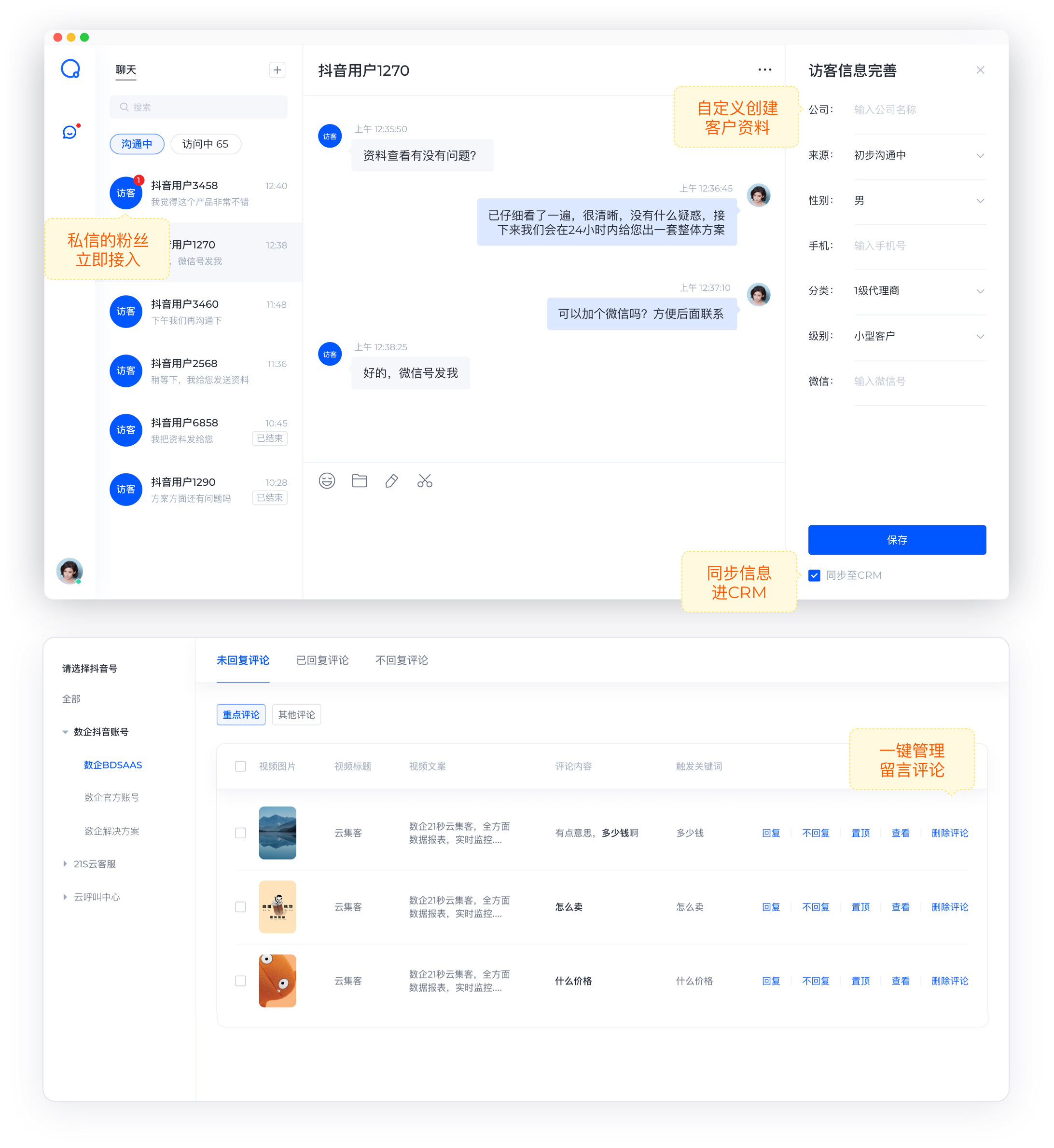 人工回复、一键回复、关键词自动回复,支持PC手机双端,随时随地不错过任何客户消息