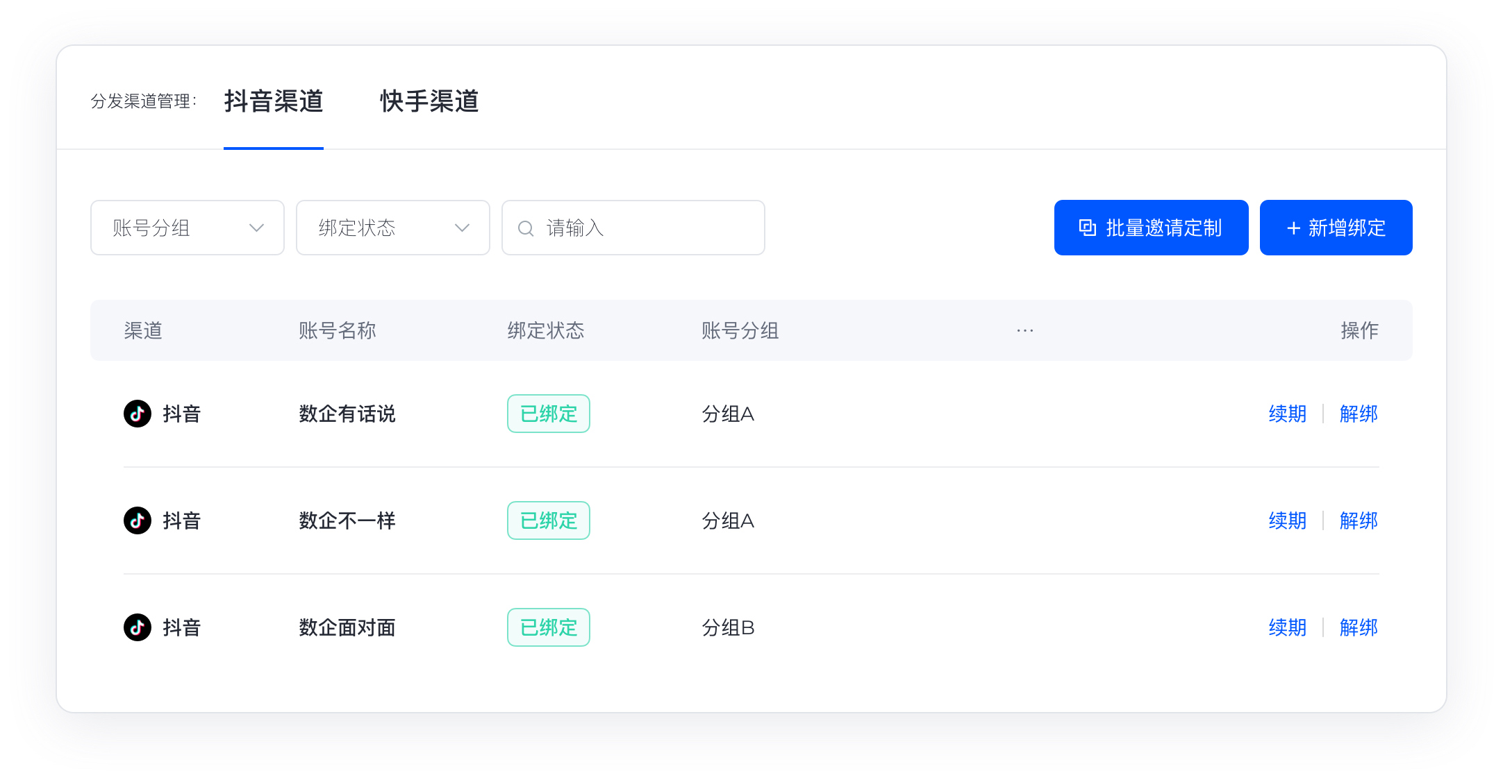 抖音、快手等账号授权,仅需扫码,一键登录管理