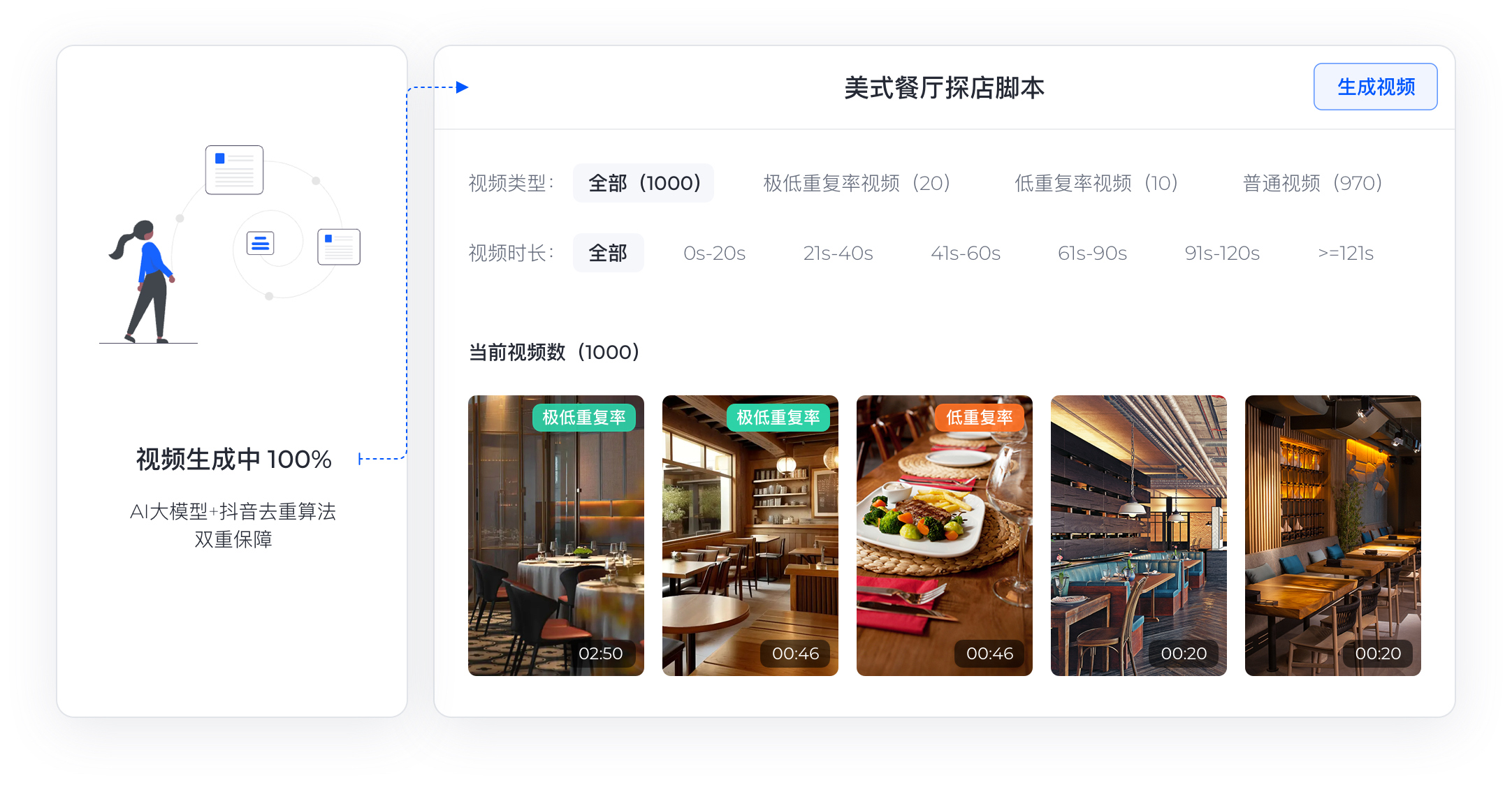 专业AI大模型+抖音官方去重算法保证内容质量,实现高效率创作